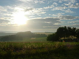 - In het westen, tegen de Belgische grens, zijn de heuvels bekend als Schneifel, een onderdeel van het bredere gebied van de Sneeuweifel met toppen die reiken tot 698 meter;